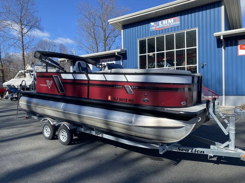 2023 Viaggio L20U with a Mercury 150 HP, Sea Star hydraulic steering, pro series ski tow bar, seat slider, LED interior lighting, Chrome LED in Rail docking lights, performance shield, pontoon side keels, and more!!