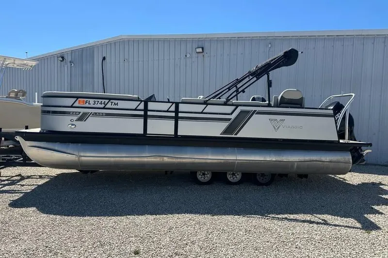 2023 Viaggo Tritoon 22R with a Suzuki 250 with only 65 hours The Viaggio Pontoon 22R (often part of the Lago Series) is a 22-foot pontoon boat designed specifically for fishing and family cruising. The "R" designation signifies its specialized rear fishing layout, which features a dedicated fishing station at the stern while maintaining traditional lounge seating in the bow.