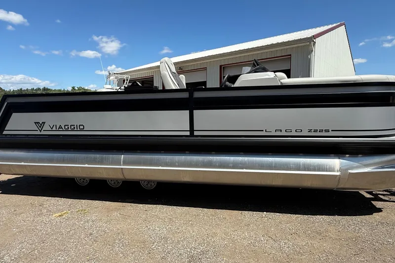 2026 Viaggio LOGO Z22S-CC powered by Suzuki 250hp. This LOGO Z22S-CC now features a luxury line! This exciting new product offers many of the luxurious standard amenities (raised helm, chrome decals, recessed speakers/cupholders built into the backrest, and diamond pattern stitched furniture) and options more common for a premium line, while featuring base pricing that rivals many brands' mid-line boats. The ALL-NEW Lago Z-S-CC is the perfect boat for relaxing out on the water. With its characteristic "swingback" rear lounger, you can position the rear seat to face forward like a bench seat or face backwards making the seat into a sun deck or lounger. This version also features a co-captain's chair, adding to the versatility of this incredible layout.