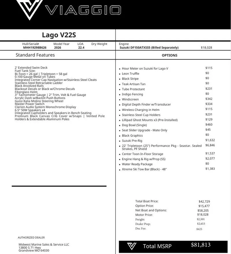 Contact Midwest Marine Boat Co Llc about 2026 Viaggio V22S