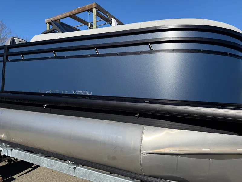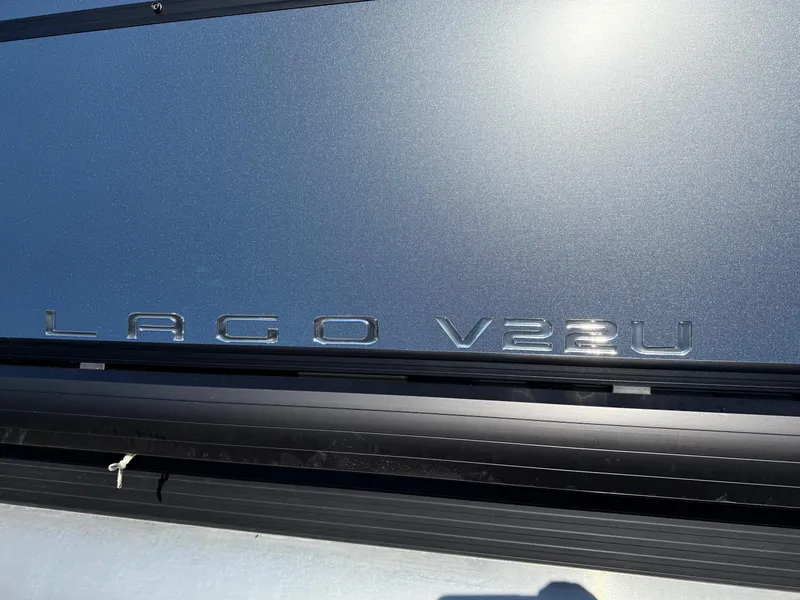2025 Viaggio Lago V22U pre rigged for a Suzuki outboard. The only thing that's entry level about our standard Lago series is the price. Featuring a stout frame, fiberglass helm, blacked-out rails, matte fencing, Xtreme ski tow bar, Lillipad ladder, SeaStar hydraulic steering, and a number of available layouts, the Lago V sets the standard for its class.