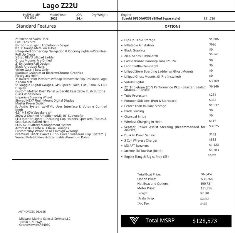 Contact Midwest Marine Boat Co Llc about 2026 Viaggio Z22U
