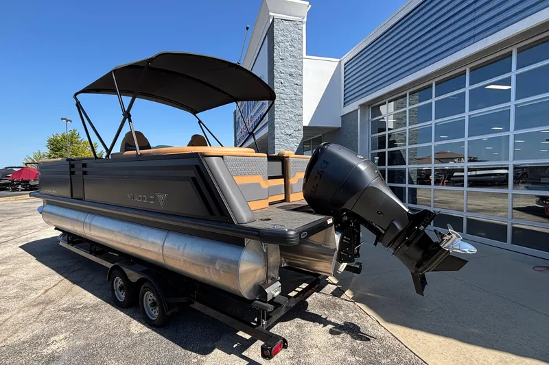 Turn heads on the water with this sleek 24' Viaggio Z24U, finished in a bold black exterior and powered by a reliable 250HP Suzuki. Designed for comfort, performance, and luxury, the Z24U delivers the ultimate pontoon experience for family cruising, watersports, or just soaking up the sun.