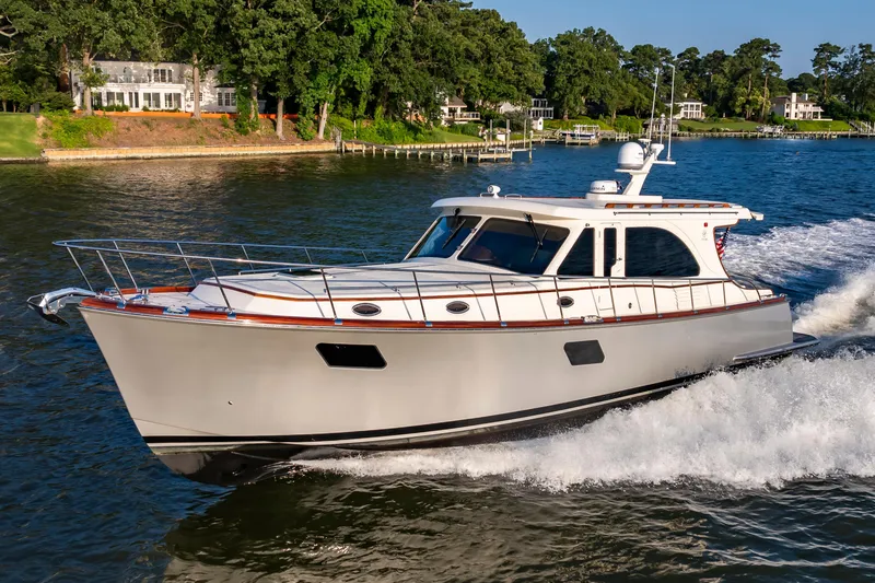 "Kismet" is a practically new (and VERY gorgeous!!) 2022 Vicem 50' Classic with just over 50 hours on her twin Volvo IPS 700 engines. She offers a 2 stateroom and 2 head layout with galley down and a generous salon. She was ordered new by a very seasoned yachtsman who incorporated all of his knowledge, having owned several high quality yachts over the years, into his final "dream boat". After waiting nearly 2 years during construction, an unfortunate family health event occurred soon after taking final delivery, causing the sale of this highly custom-built yacht. And she is SPECTACULAR with her one-of-a-kind custom Awlcraft 2000 "Moonglow Silver" hullsides with an Awlcraft "Oyster White" house paint job. She is stunning!