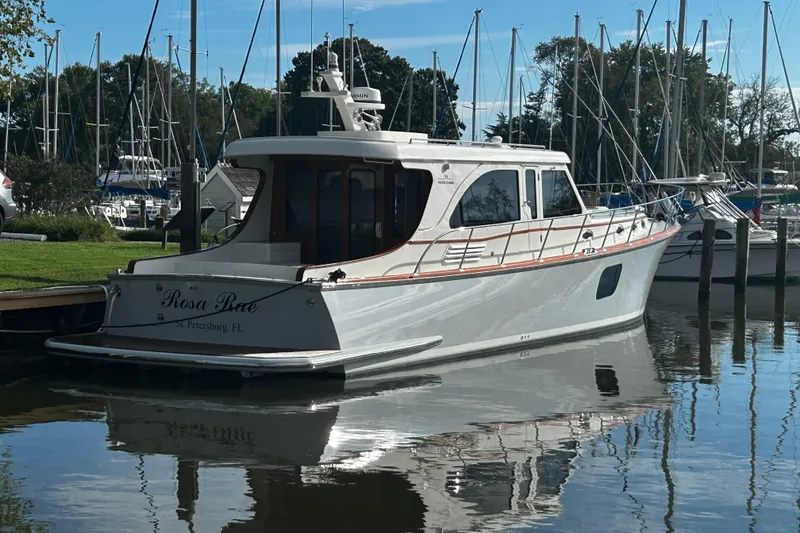 Welcome aboard ROSA RAE. This is the owners second Vicem and they really outdid themselves with custom upgrades and options. Highlights include twin Volvo 900 V-drive diesels giving top end speed of 30 knots. Mid-ship master, Drop down window in salon near nav seat for easy communication when docking. U-shaped table in salon that converts for sleeping and wet bar for entertaining starboard side. Humphree stabilizers, ac, generator, starlink and so much more