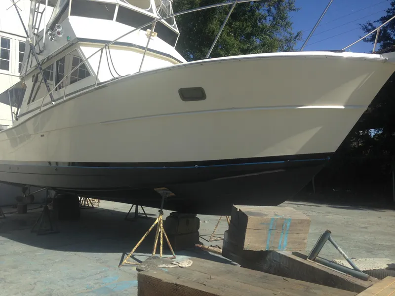 Introducing the 1986 Viking 35 Sportfish, a remarkable saltwater fishing vessel that combines performance and durability. With an overall length of 39 feet, this boat is designed for serious anglers seeking adventure on the open water. Crafted from robust fiberglass, the hull ensures longevity and resilience against the elements. Powered by twin Caterpillar 3208 inboard engines, each delivering 320 horsepower, this vessel offers impressive performance with a total of 425 and 2199 engine hours, making it a reliable choice for your fishing excursions. Equipped with a single head, it provides essential amenities for comfort during your trips. The Viking 35 Sportfish is a perfect blend of functionality and style, making it an excellent option for both seasoned fishermen and those new to the sport. Experience the thrill of saltwater fishing with this well-maintained and capable boat.