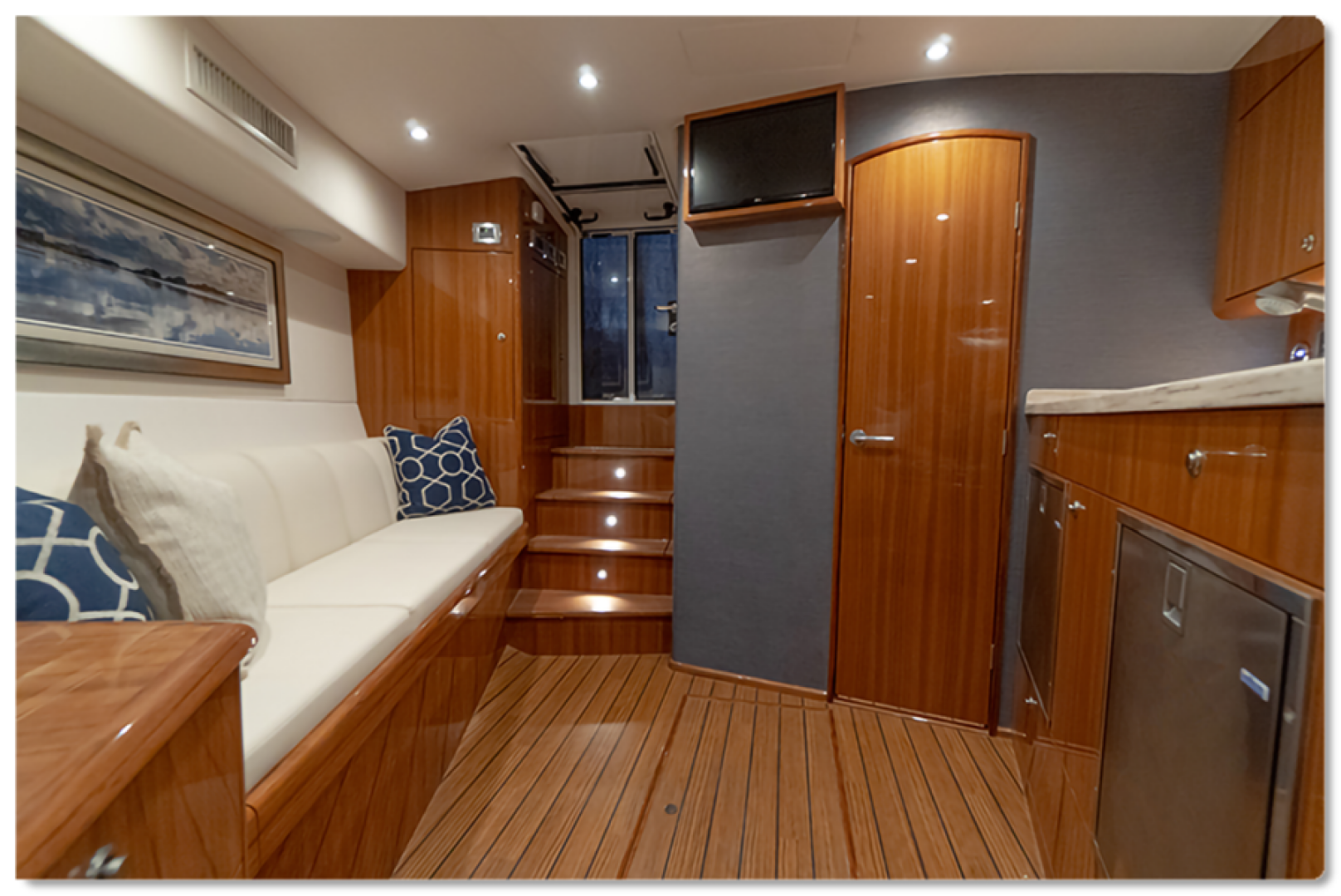 The Viking 38 Open shares the same hull, cockpit and similar mechanical arrangement to the 38 Billfish, however she differs in the command deck and bridge designs. The command deck provides seating with port and starboard L-shaped lounges and storage below. For great visibility, a raised centerline command station is a key feature on the 38 Open.