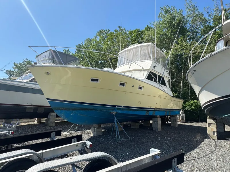 Introducing the 1983 Viking 41 Convertible, a stunning example of craftsmanship in the world of convertible boats. This used vessel boasts a sleek and elegant design, highlighted by its robust fiberglass hull with a Deep Vee shape, ensuring exceptional performance and stability on the water. With an overall length of 41 feet, it offers ample space for both relaxation and adventure. The Viking 41 Convertible is equipped with features that enhance your boating experience, including reliable equipment for smooth operation. Its design is perfect for cruising, providing a comfortable and enjoyable atmosphere for you and your guests. Whether you're planning a day of fishing or a leisurely cruise, the R & R is ready to deliver unforgettable moments on the water. Embrace the legacy of Viking with this remarkable boat, combining timeless style and functionality for the discerning boater.