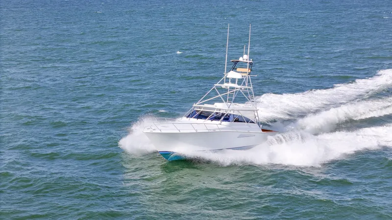 This 2003 Viking 45 Express is a great Two stateroom, one head and Shower layout that is a blank canvas for its next owners. This vessel is in need of an interior refit, but it is priced with that in mind. Powered by a pair of the MAN D2848 with low hours. The updated electronics including three Garmin and one Simrad multi-function displays. The large helm space is great for the captain to be able to entertain all of the guests and still be in the middle of all the fishing action.