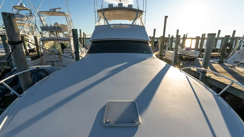 Geaux Time is a 2002 Viking 52 Convertible, one of the most respected models ever produced by Viking Yachts. She has many updates including topside paint. With her light blue hull, custom teak accents, new enclosure, and extensive mechanical history, she stands out as a turnkey option for anglers and family cruisers alike.