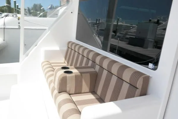 This 2004 Viking 56 Convertible is equipped with MTU 12v2000 engines and is one of the few 56 Vikings with Mezzanine seating. With 9 stainless steel rod holders molded into the gunnels and 4 more molded flush into the haunches, this 157 square foot cockpit is any fish's nightmare. Ohhh Boy is also equipped with a teak rocket launcher, a tuna door, and 11 additional rod holders on the aft railing of the bridge.