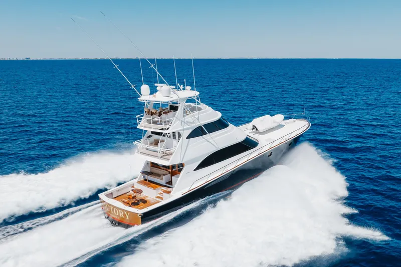 Powered by low-hour MTU M96L engines, she delivers the performance and reliability that Viking owners demand. Set up for worldwide travel, VICTORY is capable of any desire, exploring offshore fishing grounds or cruising to a distant port.