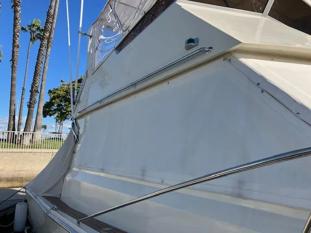 This 46' Viking Convertible has the popular two staterooms and two head layout and should be considered in better than average condition. From 2019 to 2023 "OHANA" has undergone major up-grades to include; refinished salon teak, custom fabrics, Infinity Woven Carpet, Raymarine Axiom Pro 3D electronics, Updated canvas, four sided enclosure and cushions. Custom stainless rod holders, new 1000lb Steelhead Davit. Plasdeck faux teak decking was installed on bridge, bow, side decks & cockpit.
