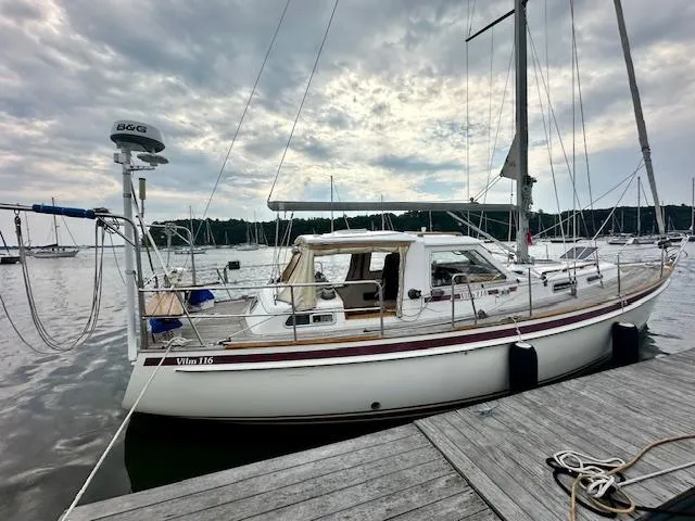 PRICE DROP! One of the most solid ocean cruisers built, this Vilm 116 is in outstanding condition and immediately ready to cruise! Recently outfitted with new B&G electronics, including dual touchscreen stations at the helm! ALL new standing rigging as of November 2024!! When the wind is down, or you need to move fast, she is powered by a 50HP Volvo Penta diesel engine with an Aqua Drive system. Solar panels with monitoring system ensure your batteries are always topped off and ready. The woodwork down below is rich and beautiful. Separate aft cabin separates guests or crew.