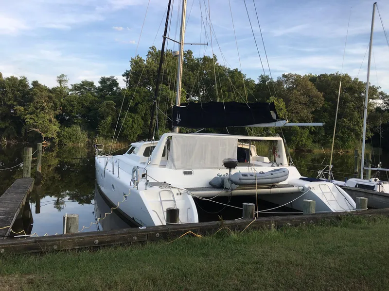 Four queen sized cabins, four en suite, with a Captains' Cabin/storage and a pantry with shelves below deck. The port forward head was converted to a closet with shelves. Have matching replacement head to install. The crew berths forward were converted to storage.