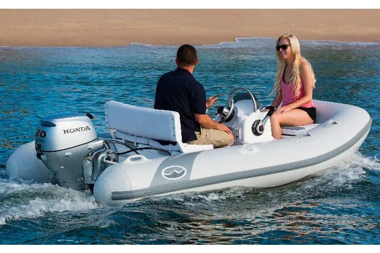 The feature loaded Supertender Console RIB combines the new Supertender RIB boat with our fully integrated injection molded Console unit. Together they create an amazing small RIB, boasting more storage than any boat this size, superior comfort and exceptional performance from a deep V Hull. The custom designed console offers more legroom for the driver, creating an exceptionally comfortable riding position. Integrated seat cushions and backrest combined with the smooth ride of the deep V hull give passengers the feeling of being in a boat twice the price.The boat comes standard with a 20 hp.