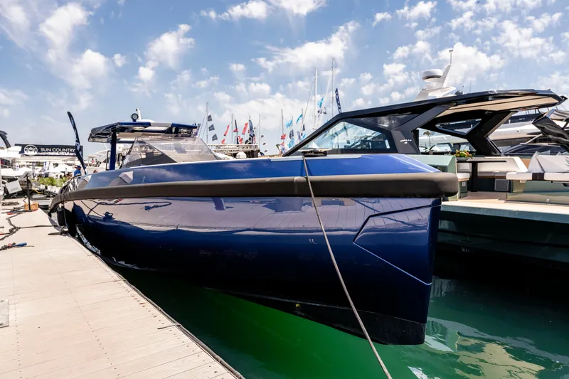 At the helm, performance meets precision. Joystick controls and Wally's hallmark wraparound fender system make docking intuitive and stress-free. Twin Volvo Penta IPS 650 engines deliver exhilarating speeds up to 38 knots, while offering a cruising range of 300 nautical miles-all with unmatched comfort, thanks to a vertical bow and advanced automatic interceptors that ensure a smooth, composed ride.