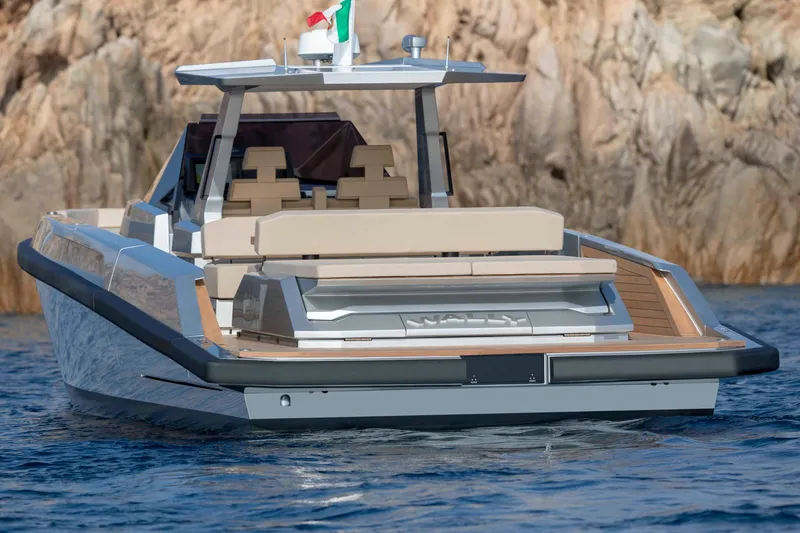 A lavish expanse of flush decking invites guests to indulge themselves on one of the comfy sunpads or seats that run from the forward lounge back to the deep cockpit. Versatile backrests allow you to switch the focus from the dining table and galley unit to the sunpad, while Wally's much-imitated aft wings fold down to maximize the entertaining space.
