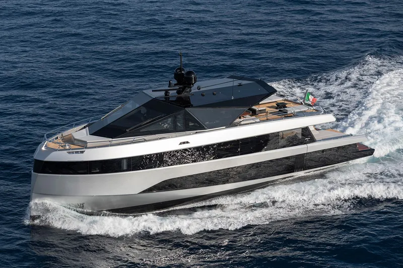 With its full-wide body, the signature of this futuristic spaceship is the vast owner's suite in the bow, which seems to hang over the water below. Wally has expertly engineered a strip of tall glass running all the way round the main deck, providing the cabin with 270-degree panoramic views and astonishing natural light.