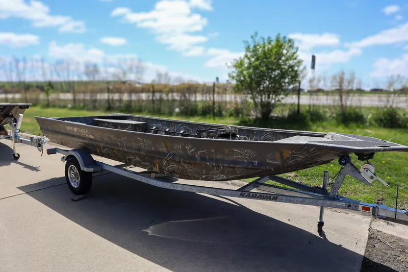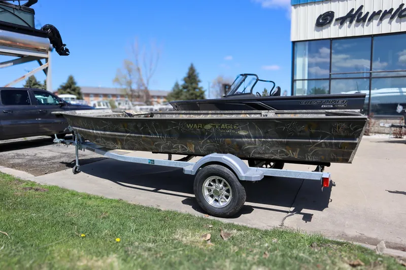 War Eagle model 754LDV was named the ultimate duck boat by Waterfowl & Retriever magazine. We agree! It is a duck hunters dream with the 12°V hull it parts through the brush to get you to your honey hole. The 754LDV is available with several accessories including a gun box with cushion or your choice of camouflage paint.