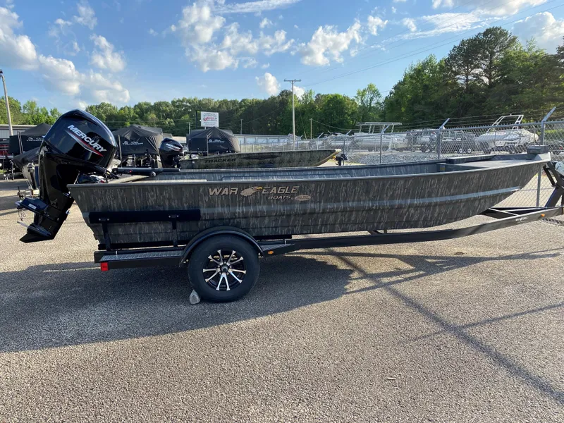 NEW 2025 WAR EAGLE 860LDV IN THE NEW REALTREE LEGACY CAMO PATTERN. THIS BOAT INCLUDES A MERCURY 60HP 4S ENGINE AND HAUL RITE TRAILER. THE OPTIONS ON THIS BOAT INCLUDE: TREAD PLATE FLOOR, POD SEATING, LINEX SPRAY LINER ON FRONT DECK, 72' GUN BOX, TROLLING MOTOR WIRING AND BRACKET, NAVIGATION LIGHTS, LED BOW LIGHT, 12 VOLT ACCY PLUG, COURTESY LIGHT, EXTRA SEAT BASE IN FLOOR, AND BILGE PUMP. THE TRAILER INCLUDES THE DELUXE PACKAGE WITH ALUMINUM STEP PADS, LED LIGHTS, AND ALUMINUM WHEELS. CONTACT US TODAY FOR MORE INFORMATION.