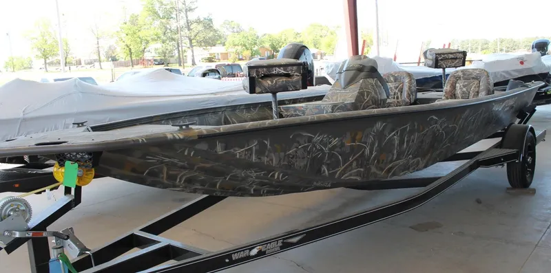 Brand new 2025 War Eagle 961 Blackhawk includes Mercury 115HP PRO XS Command Thrust 4-Stroke, Baystar Hydraulic Steering, Stainless Steel Prop, Advantage Max 4 Camo, Skin Out Linex Spray Liner, Navigation Lights, Auto Bilge Pump, Built in 16 Gallon Gas Tank, Blackhawk Side Console w/ Livewell & Steering, Duckbill w/ LED Upgrade, 60' Gunbox w/ Cushion, Diamond City Powder Coated Steel Trailer w/ Alum Wheel Upgrade & Spare.*Advertised pricing excludes applicable taxes, title & licensing fees. Pricing may exclude any added parts, accessories, delivery, reconditioning or installation fees unless otherwise noted. Pricing is subject to prior sale, price change or withdrawal without notice.