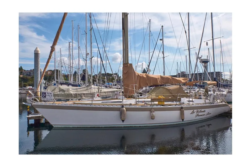 Cruised by an experienced sailor, this fine boat has "Hasse" Port Townsend sails, including a beautiful gold asymmetric spinnaker, with a double-spreader aluminum mast w/ rod rigging. The diesel is a clean Beta 50 with wonderful access, Balmar alternator, powering a 20" 3-blade MaxProp. With Mexico experience, of course there's shade protection and air conditioning. Check out the very livable galley, gracious salon with impressive storage and all three cabins: V-berth, crew cabin, and aft cabin w/ head. Known for their seaworthiness and strong construction, Wauquiez's sailboats consistently deliver swift-sailing, maneuverable designs, and hold their value. Don't miss this one! If you are seriously looking for a great offshore sailboat, La Volante Frances Jane might be your ticket. . .
