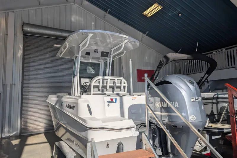 This newly arrived Wellcraft 223 Fisherman is presently in our showroom, and ready to be viewed. This 223 Fisherman, equipped with a hardtop is a beautiful, and solid riding boat. It is well equipped with its Yamaha 250/HP motor, for smooth performance, and power for water activities. The cockpit is well optioned too, with backrests for comfortable riding and lounging. This boat is so much more versatile for many activities, with the utility, and comfort for all in the family. Drop by our showroom to check this out.