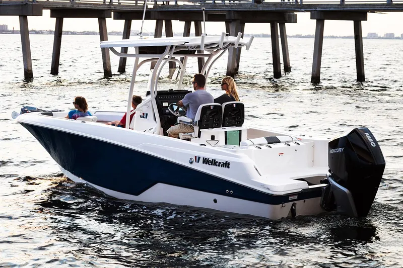 Featuring Wellcraft's renowned hull design, the 242 Fisherman embraces family boating and fishing synonymously as one. With only 65 hours. You'll appreciate the critical attention Wellcraft designers paid to every detail on the 242F. Whether it's the fit and finish, dedicated fishing features, or the masterful helm everything on this boat was deliberately provided so you can experience exceptional fishing and family outings. The enclosed head with standard porta pottie is great for extended stays and additional onboard storage. Deep live wells, fish boxes, rod holders, and tackle storage will keep you at ease when hunting gamefish, while optional bow cushions allow your family to kick back and relax. All in, the 242F has a ton of depth and truly allows you to escape to your favorite places offshore. So, take to the sea, catch your haul and relish the Well-crafted 242 Fisherman.