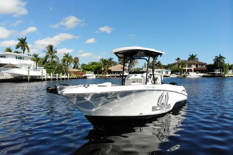Whatever your passion: luxury fishing, family boating, or offshore cruising, the 242F embraces it all. Powered by twin mercury 150's , this 24'4" vessel delivers the length, and muscle fishermen need when heading offshore-a textbook ride only possible through a high freeboard, deep hull, and an articulated bow flare.