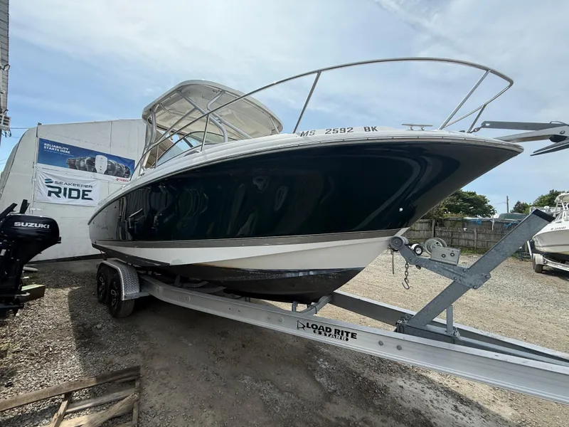The 252 Coastal is ready to set course. The spacious cabin is thoughtfully appointed with the family in mind. It offers a freshwater sink, a spacious dinette, a galley, storage and a fully functioning marine head. For the serious anglers in the group, we've outfitted the topside with just about every fishing amenity you'll need, including four stainless steel gunwale-mounted rod holders, a Kodiak 116-quart lighted baitwell and much more. The 252 Coastal. It's the boat you've wanted all along. COMES WITH LIKE NEW ALUMINUM TRAILER