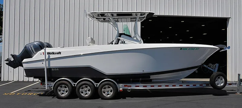 Introducing the 2021 Wellcraft 262 Fisherman, a remarkable center console boat that embodies both performance and style. With an overall length of 26.33 feet, this vessel is designed for the avid angler and family outings alike. The deep Vee hull, crafted from durable fiberglass, ensures a smooth ride even in choppy waters, making it perfect for adventurous excursions. Powered by twin 200 hp Yamaha outboard engines, this boat offers impressive performance with only 51 hours of use, promising reliability and efficiency on the water. The thoughtful design includes ample space for fishing gear and relaxation, catering to all your boating needs. Whether you're navigating coastal waters or enjoying a day on the lake, the Wellcraft 262 Fisherman is equipped to provide an exceptional experience, making it a fantastic choice for those seeking both adventure and comfort.