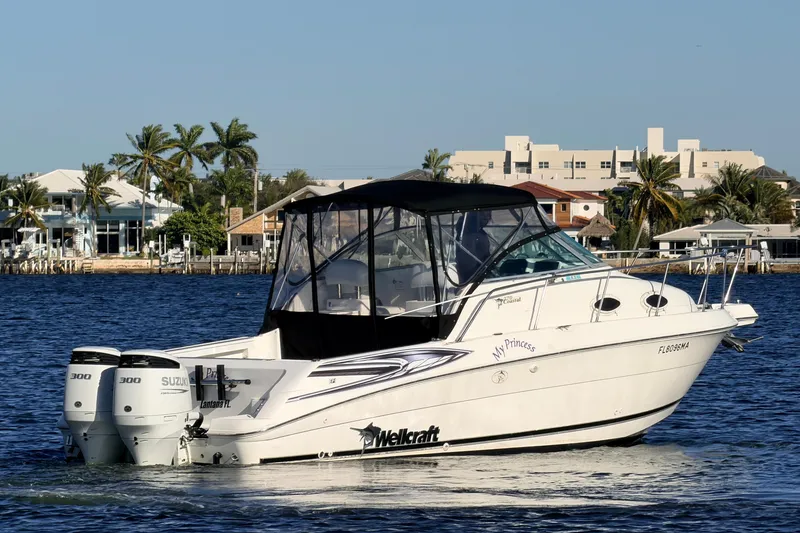 This 2000 Wellcraft 270 Coastal has been fully refreshed and is turn-key ready for your family fun! Re-powered in 2023 with Suzuki white 4-stroke engines that have only 84 hours, it offers reliable, fuel-efficient performance with the peace of mind of modern power.