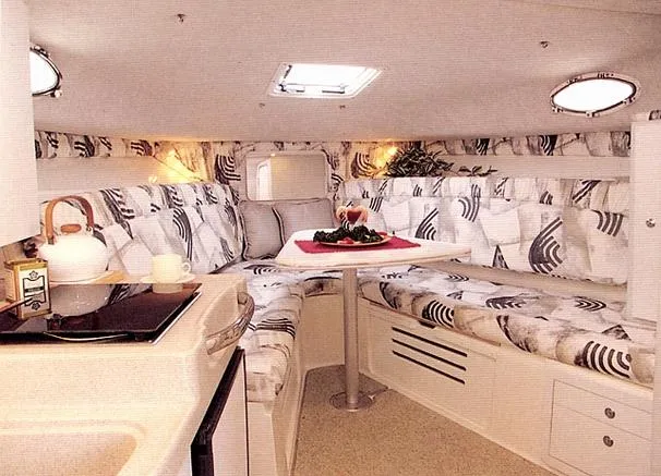 The Wellcraft 290 Coastal provides exceptional cruiser-style cabin amenities with all the requirements needed for serious weekend fishing. The comfortable helm has easy-to-read gauges, seats two with an adjustable operator seat, and has beverage holders close at hand. Anglers will appreciate the well-equipped transom with plenty of room for hauling in fish and an ample-sized fish locker for storage. The bait prep area is easily accessible and even easier to clean. On the starboard, there is a large, lighted livewell with a viewing window that can easily be reached by everyone on board. The large forward cabin has twin pilot berths and a dinette that converts to a double berth in seconds. The midcabin comfortably sleeps two.