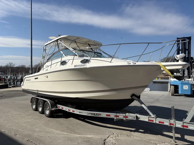 2025 Wellcraft 290 Coastal. Original Owner Boat. Twin Yamaha F250's. Yamaha Digital Gauges. Hardtop w/ Full Enclosure. Additional Aft Slant Back Curtain. Outriggers. Raymarine GPS/Chartplotter/Fishfinder/Radar. Stereo. VHF. Trim Tabs. Generator. A/C w/ Reverse Cycle Heat. Shore Power. Battery Charger. Hot Water Heater. Vacu-Flush Head. Windlass. Spotlight. This boat was stored inside a hi and dry on the upper Chesapeake Bay for most of its life. Only left in the water for 3 seasons on the upper Chesapeake. This boat has never sat in salt water. Boat was not used the last 3 years. Engines just completely serviced to include, impellers, thermostats, internal zincs. Everything on the boat works. Fresh Bottom Paint. Trailer pictured is a 2022 Load Rite 18,000# GVWR. Price includes trailer. Owner will sell without trailer.