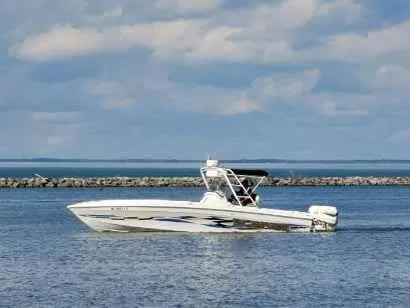 Freshwater use only this vessel features Twin 250-hp Johnson Ocean Pro 2 Stroke with only 575 original hours! Full Cockpit Cover Cover, Other features include but are not limited to: Raytheon Electronics (GPS/Chartplotter, VHF, Fish & Depth Sounder, etc.), Kenwood Stereo System, 1998 Road Trailer