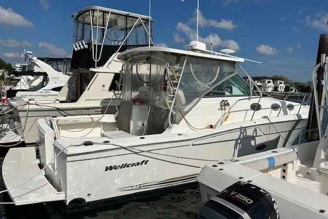The Wellcraft 330 Coastal contains important details that anglers will definitely appreciate including prep centers, an extra-large windshield, and two flush-mounted fish boxes in the cockpit. Also included are four flush-mount rod holders and a large transom door to make landing the big one a breeze and for easy access to the swim platform. The bait prep area is easily accessible from anywhere on the fishing platform. The comfortable helm makes navigation simple with easy-to-read instruments and a compass. In the cabin, there are tons of of amenities under six feet, seven inches of headroom. Some of these features include a large forward berth with a hanging locker, settee, and ample storage. The fully appointed galley has everything needed for overnighting including Granulon countertops with a molded sink. The head compartment includes a shower, full-length mirror, VacuFlush head with holding tank, and a vanity with sink.
