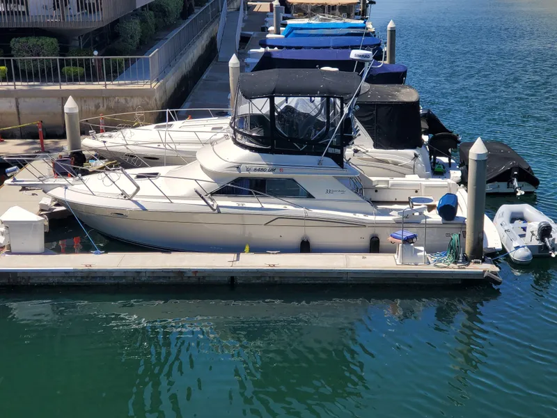 1991 Wellcraft 3300 Sport Bridge 33' with fully serviced twin Cummins Diesel should make for a fine fishing platform. All new dash includes Gauges and Switches, New Full Electronics Package including dual Simrad displays, Transducer, Radar, New Sionyx Night Vision Camera, Generator, Air Conditioning, Inverter, Underwater Lights, with 275 gallons of fuel you should be able to go fishing any where you want. Full Bridge enclosure with newer windows and upholstery. Full Galley, Cooktop Stove and Refrigerator for the overnight trips with sleeping for 4. The cockpit has the full upright bait tank plus walk through transom door with plenty of room for fishing. Well Maintained with Many Recent Upgrades! LED lighting in Cabin and Cockpit, Located in a desirable slip that is transferable to a new owner. Call or Email Today for More Details!