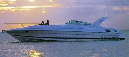 Wellcraft 45 Excalibur Specifications - Standard Equipment Hull and Deck - Bow rail - stainless steel - Cleats all through-bolted stainless steel - Compliant with Coast Guard safety standards - Cushion - sunpad - Engine hatch gas assist - electric lift - Engine room - insulation - Fiberglass encapsulated stringer system - Five-year limited hull warranty - Hatches on foredeck with screens - Opening portlights with screens and stainless trim rings - Radar arch w- spreader light - Swim platform - 30 in. width - Swim platform with stainless ladder - Stainless steel rub rail - Steering wheel - custom woodgrain - Transom door - Windshield - tempered glass Cockpit - Aft lounge seating with storage - Beverage holders - Carpet, cockpit snap-in - Cockpit cover - Sunbrella - Cockpit, self-draining fiberglass - Courtesy lights - Helm seat - adjustable, electric, double - Ice maker and dual voltage refrigerator Cabin - Berth - forward with storage - Carpet runners - Custom interior fabrics and soft-touch vinyl seating - Decor package - accent pillows, comforter - Direct - indirect lighting - Duplex outlet - 110V GFI protected - Hanging locker - Hatch covers - interior - Sunbrella - Interior designer package - Mid cabin berth w- opening portlight and table - Privacy door - master stateroom - V-berth storage Galley - Cabinet hardware - gold - Countertop - Granulon with sink - Duplex outlet 110V - GFI protected - Faucet - gold - chrome - Microwave oven - Refrigerator - dual voltage - Storage Head - Duplex outlet 110V - GFI protected - Fiberglass vanity w- Granulon countertop and sink - Head faucet - gold - chrome - Head - SeaLand VacuFlush w- holding tank - Mirror - Shower compartment - molded fiberglass Mechanical - Accessory plug - 12 volt - Air conditioner with heat (reverse cycle) 16000 BTU - Battery switches - dual - Bilge blower - 12 volt - 3 Bilge pumps with auto float switch - Compass - Converter, 40 amp - Depth sounder - Detector - carbon monoxide - Dockside water connection - Engine synchronizer gauge (gas only) - Generator - 5.0 gas with sound shield and auto-on blower - Horn - Ignition safety interlock switch with lanyard - Instrumentation - full - Mufflers - gas engines - Navigation lights - Power steering - Pressurized freshwater system w- transom shower - Propeller - stainless - Raw water wash - forward anchor locker - Shorepower system 30 amp - AC-DC distribution panel and 50 ft. shore cord, dual - Six disc CD changer - Clarion - Stereo - Clarion AM-FM cassette w- remote control 4 speakers - Stereo upgrade package - Clarion - Trim tabs - with mechanical indicator - Water heater - 6 gal. - Windlass with electric up - down switches and 200 ft. anchor line - Wiring for windlass Wellcraft 45 Excalibur Optional Equipment - Bottom paint - Canvas - side and aft curtains - Canvas - Bimini top with boot, Sunbrella - Stove, double-burner electric - ceran top - with cutting board cover - Overboard discharge for head - Engine freshwater cooling system - Fire suppression system - Generator - Kohler - 5.0 kW - diesel - Multimedia Entertainment Package - Clarion - Spotlight - TV - Telephone inlet and antenna - 150 ft. Chain in lieu of 150 ft. rope - chain combo Engine Options - Merc Twin 502 MAG MPI Bravo III - Merc Twin 502 MAG MPI Bravo III-FWC - Volvo Twin KAD 43P-FWC - Volvo Twin KAD 44P EDC-FWC