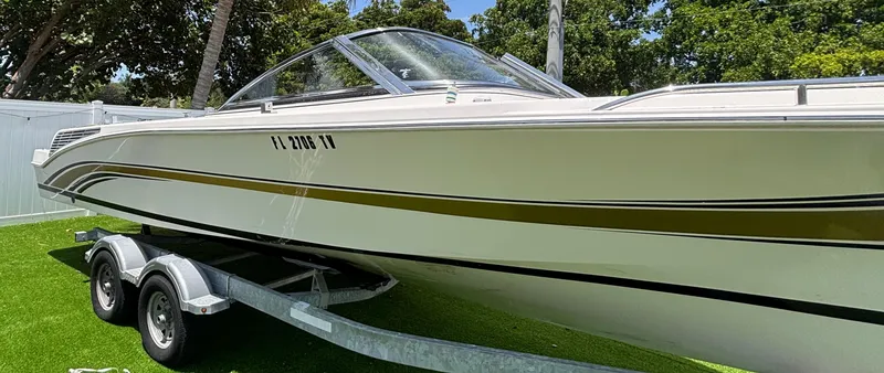 Custom built as a limousine tender for a 130' Westport superyacht, this one-of-a-kind bowrider was designed to deliver the same level of luxury, refinement, and performance expected on board a world-class vessel. Every detail - from the custom black and gold hull striping to the teak-style marine decking and premium finishes - reflects its superyacht pedigree. Powered by a Volvo Penta diesel sterndrive, it offered guests a smooth and quiet ride to shore with the comfort and elegance of a floating lounge. Whether you're using it as a tender or a stylish day cruiser, this boat brings superyacht standards to every outing.
