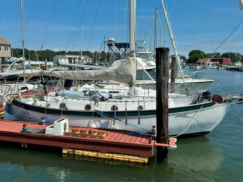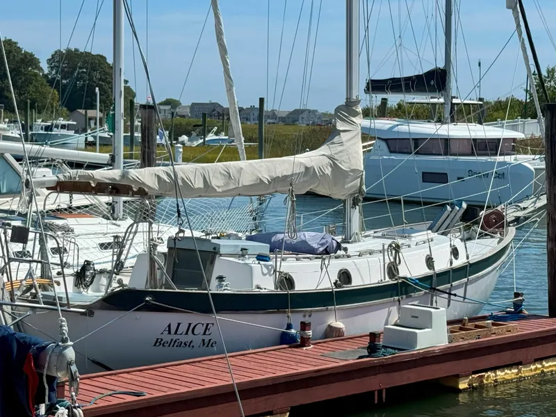 On deck you will find 8" to 10" high bullworks for added safety. She comes equipped with newer sails from the loft of Bondell Sails and Rigging out of Rockport Me. The main and staysail have less than 100 hours of sailing time on them. A Monitor windvane by Scanmar International adorns the stern and has literally never been used. If you're looking for a world cruising sailboat that has simple easy to work on systems that won't break the bank Alice may be the boat for you.