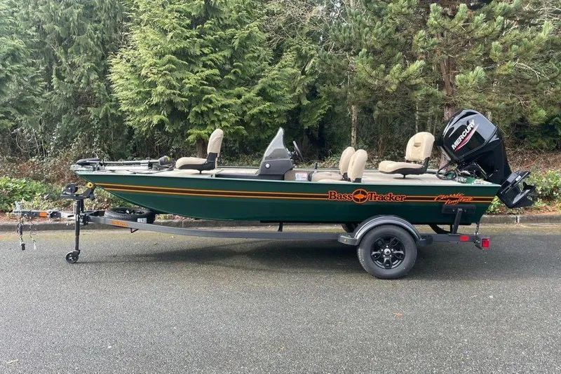 The BASS TRACKER CLASSIC Limited Edition enhances the best value in fishing boats with luxurious, eye-catching features. Its Army Green DIAMONDCOAT™ powder coat finish offers both striking appearance and proven durability, maintaining a long-lasting shine. The boat is equipped with 13-inch black trailer wheels fitted with premium radial tires, complemented by a matching spare. Inside, the Limited Edition boasts an upgraded fishing setup, including a Lowrance® Hook5 Reveal color GPS fishfinder. To complete this exclusive package, it features Limited Edition floor mats, decals, and a custom deck stripe. BASS TRACKER is dedicated to delivering industry-leading value to anglers and families, and with the introduction of the all-new BASS TRACKER CLASSIC Limited Edition, you receive exceptional value along with a distinctive feature set that's destined to become a classic.