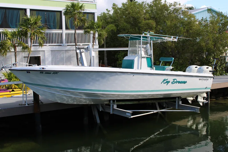 This 1999 28' Whitewater has been re-powered with twin 2018 Suzuki 200 hp outboards with 108 hours. The 100 hour service has been completed. She is ready to head offshore with her updated Simrad navigation system, VHF radio, outriggers, in-deck livewell, 500' of anchor line with windlass, and large insulated coffin box on the bow to store your catch. All batteries were just replaced. The boat has been lift kept.