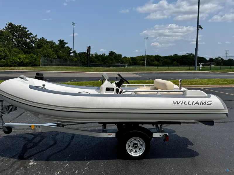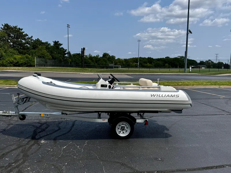 Introducing the Williams Jet Tenders Sportjet 395, a remarkable tender from 2019 that combines performance and style. With an overall length of 12.67 feet, this fiberglass vessel is designed for agility and speed. Powered by a robust 90 hp BRP Rotax Ace 903 engine, it boasts an impressive cruising speed of 35 mph and a maximum hull speed of 46 mph, ensuring exhilarating rides on the water. The Sportjet 395 comfortably accommodates up to six passengers, making it perfect for family outings or adventurous excursions with friends. Its innovative jet drive configuration enhances maneuverability, allowing for smooth navigation in various conditions. This used tender has only 90 hours of engine use, reflecting its excellent condition and reliability. With its sleek design and powerful performance, the Williams Sportjet 395 is an ideal choice for those seeking a high-quality, versatile tender for their boating adventures.
