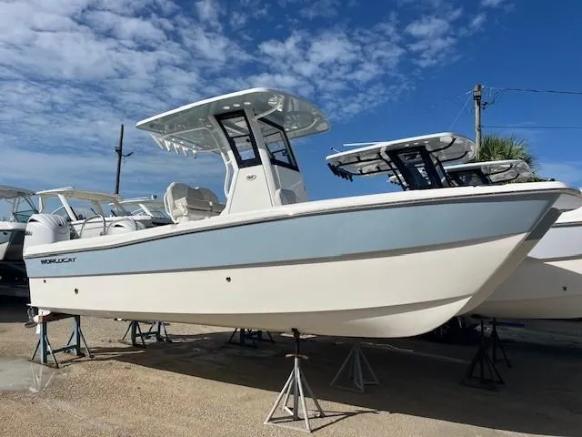 Introducing the 2025 World Cat 235 CC, a stunning new power catamaran that embodies performance and style. With an overall length of 23 feet, this vessel is designed for both agility and stability on the water. Crafted from durable fiberglass, its catamaran hull shape ensures a smooth ride, making it perfect for cruising. Equipped with twin Yamaha outboard engines, each delivering 115 horsepower, the 235 CC boasts an impressive cruising speed of 25.8 mph and a maximum hull speed of 41.8 mph, allowing for exhilarating adventures on the open water. This catamaran is not just about speed; it also offers a spacious layout that enhances comfort and enjoyment. Ideal for day trips or weekend getaways, the World Cat 235 CC is a remarkable choice for those seeking a blend of performance and luxury in their boating experience.