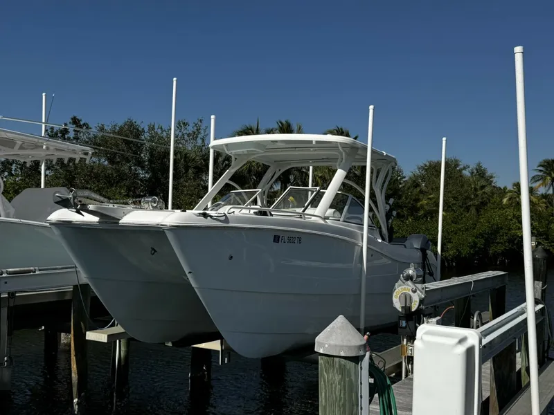 Experience the smooth, stable ride only a catamaran can deliver with this Lift-kept 2022 World Cat 255DC-a versatile dual-console built for family fun, offshore confidence, and serious comfort. Powered by twin Yamaha 150hp outboards with low hours, she offers incredible efficiency, a soft ride in any chop, and all the must-have features: roomy seating, a deep cockpit, generous storage, a spacious head, and World Cat's legendary offshore capability. Whether you're cruising, fishing, sandbar-hopping, or chasing sunsets, this 255DC does it all with style.