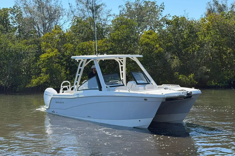 The 2026 World Cat 265DC-X for sale in Sarasota, FL is in stock and offering the perfect balance of offshore performance, family comfort, and premium dual console versatility. Powered by twin Mercury 200HP DTS engines, this World Cat delivers responsive handling, excellent fuel efficiency, and the legendary smooth ride that catamaran hulls are known for - ideal for cruising Sarasota Bay, running offshore, or enjoying weekends at the sandbar.