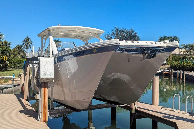 Step aboard this stunning 2021 World Cat 280DC-X, a benchmark in the luxury dual-console catamaran class. Renowned for delivering one of the smoothest, driest, and most stable rides on the water, the 280DC-X blends offshore capability with upscale comfort in a way that only World Cat can. Powered by twin Mercury 200 V6 outboards, this vessel offers effortless handling, excellent fuel efficiency, and quiet, refined performance.