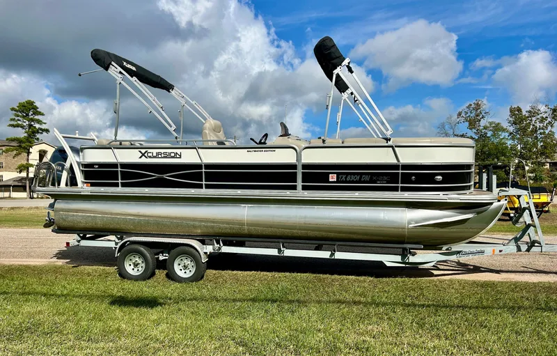 2016 Xcursion 23C, 2016 Xcursion Pontoon with Trailer Your Unforgettable Boating Experience This boat is very spacious and has lots of storage. A perfect boat for spending the entire day on the water-whether cruising, entertaining or just anchored out elaxing. Modern and luxurious, the 2016 Xcursion Pontoon impresses with its stunning design and excellent performance. Crafted with meticulous attention to detail, this boat offers a high-quality venue for memorable outings on the water. Sleek Design & Superior Comfort The 2016 Xcursion Pontoon boasts a sleek design that catches the eye. It's more than just the looks; it offers superior comfort to its passengers too. The seating arrangements and interiors are plush and comfortable, designed to provide you the best boating experience. Outstanding Performance Brimming with a powerful motor, the 2016 Xcursion Pontoon offers outstanding performance whether you plan on gentle cruising or high-speed adventures. It challenges the conventions of traditional pontoon boats with its agility and speed. Safety Features This model is equipped with top-of-the-line safety features ensuring reliability during your journeys. With features like sturdy railings, bright deck lighting for night travels, and a user-friendly dashboard layout, you can ensure secure and safe journeys. Other Key Features The 2016 Xcursion Pontoon also comes with other standout features like spacious storage compartments, fantastic audio system for all your music requirements, and a convertible sun pad for lounging on sunny days. Conclusion Enjoy your time on the water like never before with the 2016 Xcursion Pontoon, the boat that redefines luxury and performance.