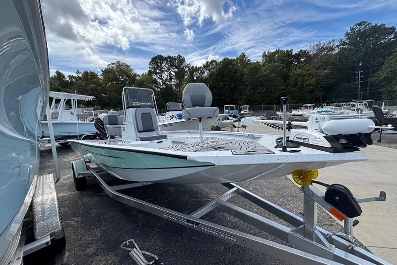 YAMAHA VF115LA Outboard, BACK TRACK Aluminum Trailer, Sea Foam Hull, Redfish Package, Bay Stainless Package, Minn Kota 80lb Riptide Terrova Troll Motor with Spot Lock, 6 ga. Troll Motor Harness, Troll Motor Slide Bracket, Trim on Bow, Storm Gray Sea Dek, Saltwater Trailer Package.